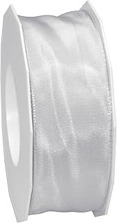 PRÄSENT LYON Band mit Drahtkante weiß, 25 m Dekoband zum Verzieren & Basteln, 40 mm Breite, leicht biegsames Schleifenband, für festliche Dekos zu besonderen Anlässen