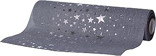 100% Mosel Tischläufer Sterne (28 cm x 5 m), Tischband in Leinenoptik, edle Tischdeko für Weihnachten & Adventszeit, Festliche Dekoration zu besonderen Anlässen (Grau/Silber)