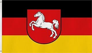 Niedersachsen Bootsflagge 30x45 cm - 30 cm x 45 cm- 100 % Polyester- hohe Qualität und Stabilität- UV-beständige, intensive Farben- inkl. Gurtband, Strick und Strickschlaufe zur Befestigung Unsere Flaggen 30 x 45 cm sind mit einem oben und unten offenen Hohlsaum auf der Mastseite konfektioniert. Sie sind besonders für Dekorationszwecke im Innenbereich geeignet und im geschützten Aussenbereich nutzbar. Durch den Hohlsaum lassen sich Stangen, Stöcker und Seile mit einem maximalen Durchmesser von 8 mm durchführen.