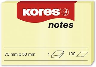 Kores - Gelbe Haftnotizen, Selbstklebender Notizblock, 75 x 50 mm, Packung mit 12 Blöcken à 100 Blatt