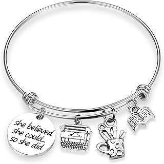 Schriftstellerarmband "She Believed She Could", Schriftsteller-Armband, Schreibmaschinen-Armband, Geschenk, Stift-Behälter, Schreibmaschinen-Anhänger, Schmuck (She Believed Writer BR)