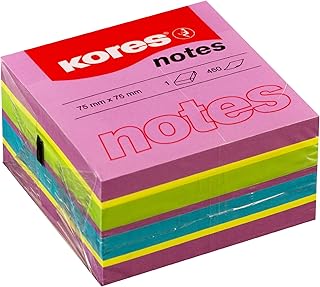 Kores - Haftnotizen Würfel Frühling, farbiger selbstklebender Notizblock, 75 x 75 mm, Packung mit 1 Würfel mit 450 Blatt in 4 verschiedenen Farben