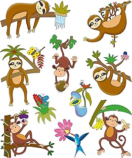 AVERY Zweckform 54993 Fensterbilder Dschungel 10 Stück (bunte selbstklebende Fensteraufkleber für Kinder, glänzend, wasserfest, ablösbare Fensterfolie, Fenstersticker und Deko für Fenster und Spiegel)