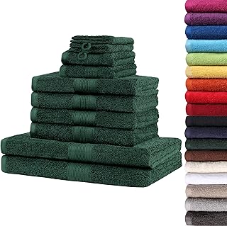 NatureMark 10 TLG. Frottier Handtuch-Set Verschiedene Größen 4X Handtücher, 2X Duschtücher, 2X Gästetücher, 2X Waschhandschuhe - Premium Qualität (10 TLG. Frottier Set, Dunkel grün)