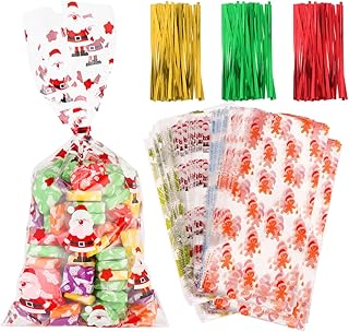 Toyvian 200 Stück Weihnachten Zellophan behandeln Taschen mit Twist Krawatten für Geschenk Taschen Weihnachten Süßigkeiten Taschen, Urlaub Goodie Bags, Weihnachts Partybevorzugungen
