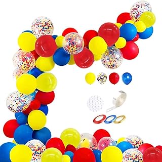 109 Stück Rot Gelb Blau Konfetti Latex Ballon Set - 12 Zoll-Latexballons geeignet für Babyparty Geburtstagsfeier Abschlussfeier Casino Party Geschlecht offenbaren Partydekoration