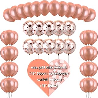 Konsait Latex Luftballon in Rosegold und Konfetti Luftballons gefüllte Helium geeignet für Hochzeit Geburtstag Party Dekorationen, Zeremonie (46 Stück)
