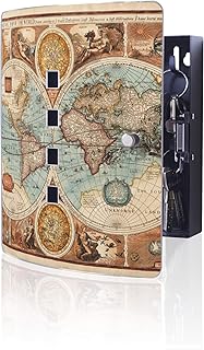 banjado® Design Schlüsselkasten aus Edelstahl Motiv Historische Weltkarte für 24x21,5x7cm Schlüssel - Schlüsselschrank zur Schlüssel Aufbewahrung 24x21,5x7cm groß mit praktischem Magnetverschluss