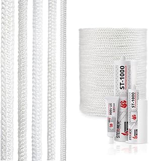 STEIGNER Ofendichtschnur Kamindichtung aus GLASFASERN, hitzebeständig bis 550°C, inkl. feuerfestem Montagekleber, Weiss, 2,5m, 8mm, SKD02