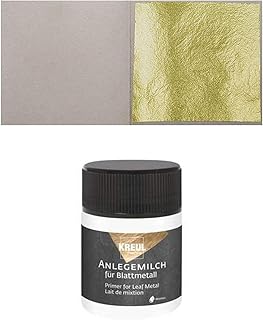 50 Blatt Blattgold (Imit.) Blattmetall Schlagmetall 4,8 cm x 4,8 cm + 1 x Anlegemilch 50ml
