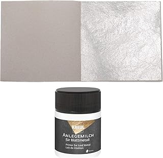 Starterset 50 Blatt Echtes Blattsilber 5cm x 5cm (50x50mm) Echt Silber Set - Zum Versilbern & Basteln aller Art im Innenbereich. Blattsilber wird für die Dekoration von Holz, Glas und Metall verwendet. Bedingt durch des hohen Oxidationsrisikos, dem reines Silber ausgesetzt ist, sollte man es immer mit einem Überzugslack schützen! Der niedrigste Preis für 50 Blatt Echtes Feines Blattsilber 5 cm x 5 cm Echt Silber Set zum Versilbern & Basteln Silberblatt Möbel zum Versilbern & Basteln + 1 x Kreul Anlegemilch Kleber 50ml Entdecken Sie Millionen von Rabattprodukten auf Little-Budget.de