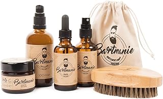 Bartmanie 5 teiliges Bartpflege Geschenk-Set bestehend aus Bartshampoo (100ml), Bartwuchsspray (50ml), Bartwachs (50ml), Bartöl (50ml) & Bartbürste