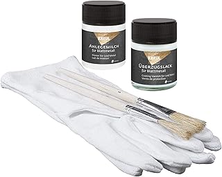 Zubehör für Blattgold & Blattsilber 1 x Anlegemilch 50ml + 1 x Überzugslack 50ml + 1 Vergolderhandschuhe + 2 Pinsel
