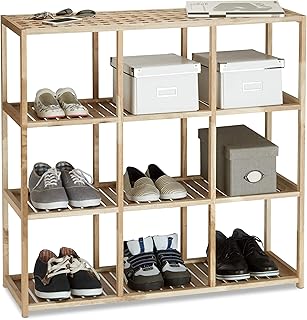 Relaxdays Holzregal Küche und Bad, Walnuss Standregal, 4 Ablagen Allzweckregal, Badregal, HxBxT: 86 x 90 x 31 cm, natur