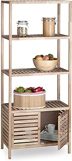 Relaxdays Badregal aus Bambus, 3 Ablagen & 1 Fach mit Tür, Bad & Küche, schmales Badmöbel, HBT: 87,5 x 35 x 29 cm, natur