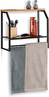 Relaxdays, schwarz Wandregal mit Handtuchhalter, Regal aus Eisen mit Zwei Ablagen, für Küche oder Bad, HxBxT: 41x45x23cm