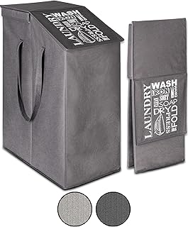 TOPP4u schmaler Wäschekorb mit Deckel - Faltbarer Nischen-Wäschesammler - platzsparende Wäschetonne - Wäsche-Organizer Grau - 65 L - 25 x 45 x 60 cm