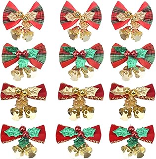 NATUCE Weihnachten Schleifen Weihnachtsbaum Deko, Rot Schleife mit Glöckchen, Weihnachtsbogen Band Bogen für Weihnachtsbaum Weihnachtsbaumschmuck, Weihnachtsbaum Bögen Weihnachtsverzierung (5CM-12PCS)