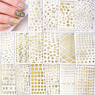 Qpout 850+ Designs Verschiedene Nagelaufkleber, Gold Glitzer Nagelabziehbilder, Blume Schmetterling Feder Stamm Totem Feder 3D Selbstklebende Nagel Dekoration Aufkleber für Frauen Mädchen Kinder