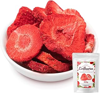 Erdbeeren gefriergetrocknet in Scheiben, 300g gefriergetrocknete Früchte, ungezuckerte fruchtige Erdbeerchips, getrocknete Erdbeeren