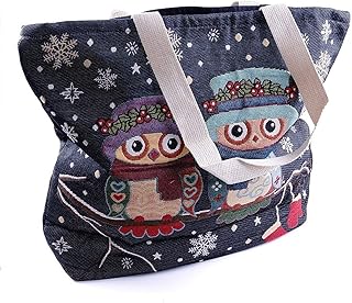 Imago große Tragetasche Eulen, Shopper, Shoppingbag, Tasche, bestickte Stofftasche, Einkaufstasche, Stoffbeutel