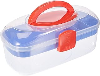 Rayher 39254000 Sortierbox, mit Tragegriff und Einsatz, transparent, 27,8 x 12,1 x 13,1 cm, Nähkasten oder Aufbewahrung für Bastelmaterial, Schmuck, Spielzeug, Werkzeug