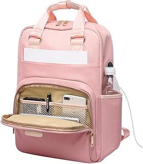BRINCH Laptop-Rucksack, 39,6 cm breit, offen, Computer-Rucksack, Laptop-Tasche, College-Rucksack, wasserabweisend, Business-Reiserucksack, Mehrzweck-Rucksack mit USB-Ladeanschluss für Damen, Pink