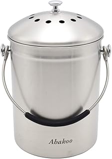 Abakoo Komposteimer aus Edelstahl für Küchenarbeitsplatten Komposteimer Küchenteimer Kompost mit Deckel, inklusive Kohlefilter