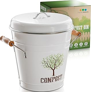 Komposteimer mit Deckel, 3,8 l, Vintage, weißer Komposteimer, Komposteimer, Küche, Komposteimer, kleiner Komposteimer, Komposteimer, für Küchentheke, Komposteimer für den Innenbereich
