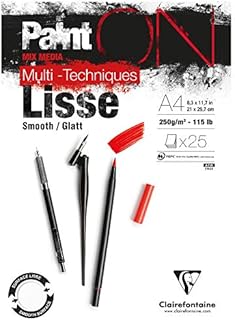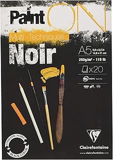 Clairefontaine - Ref 975169C - Paint'ON Multi-Technique Black Paper Pad (20 Sheets) - A4 Size, 250gsm Heavyweight Paper, Slight Rough Grain, Acid Free, pH Neutral : Amazon.co.uk Arts & Crafts › Art & Craft Supplies › Art Paper › Loose Drawing Paper £950 & FREE Returns FREE delivery Friday, July 1 on your first eligible order to UK or Ireland. This item: Clairefontaine - Ref 975169C - Paint'ON Multi-Technique Black Paper Pad (20 Sheets) - A4 Size, 250gsm Heavyweight Paper, Slight Rough Grain, Acid Free, pH Neutral $16.21 Pilot Fountain Pen Ink Converter Screw Type (CON-40) $5.85 Clairefontaine 793464C A5 Age Bag Essentials Thread, Bound Notebook, Lined, 192 Pages, Blue $17.53