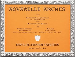 Arches 200177173 Block Aquarell rau, 300 g/qm, 20 Blatt pro Block"rundum geleimt", 46 x 61 cm, weiß