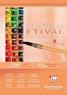 Clairefontaine 96306C Etival Matt Aquarellpapier Block (kopfseitig geleimt, 10 Blatt, DIN A3, 29,7 x 42 cm, feinkörnig, 100% Zellulose, 300 g) weiß