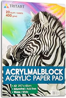 Tritart Acryl-Papier A3 400g/m2 | Malblock für Acrylfarben 20 Blatt weiß | hochwertiges Acryl Zeichenpapier säurefrei | schweres Malpapier für Acrylmalerei und Ölmalerei | kopfseitig geleimt