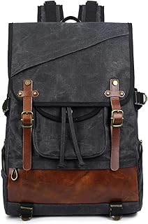 Vintage Rucksack Damen Herren Wasserdicht gewachst Canvas Rucksäcke Daypack Backpack Reiserucksack für Uni Reise Outdoor (Schwarz)