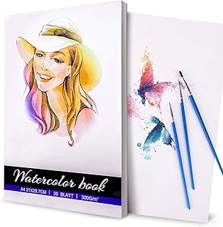 Aquarellpapier A3 20 Blatt Aquarellblock Aquarell Pad Premium Weiß Glatt Watercolor Paper Matt Aquarell Papier Wasserfarben Gouache Ideal für Acryl Zeichnen Malen Aquarelltechniken