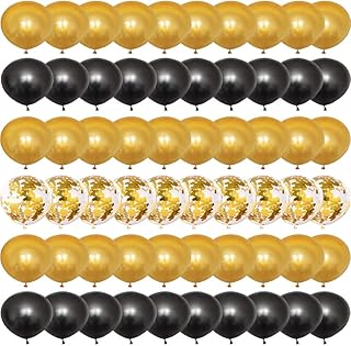 O-Kinee Luftballons Schwarz Gold, Ballon Gold Schwarz, 60 Stück Schwarz Gold Konfetti Luftballons, Helium Luftballons für Geburtstag Hochzeit Graduierung Party Dekoration