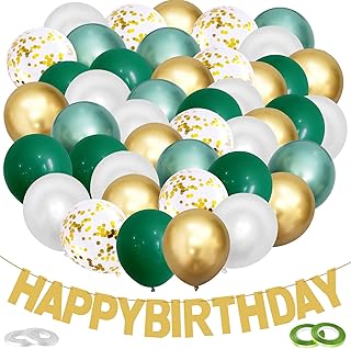 GRESAHOM 60 Stück Luftballons, Weiß Gold Grün Luftballons Set, Metallisches Grün Luftballons Konfetti & Helium Balloons mit Bändern, Latex Ballons für Hochzeit, Geburtstag, Babyparty Wiederverwendbar