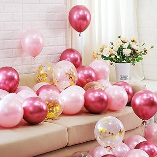 onehous Luftballons Rosa, 50 Stück Rosa Geburtstag Luftballons Set mit Golden Konfetti & Helium Balloons Metallic Silber Ballons für Hochzeit, Geburtstag, Babyparty, Graduierung, Deko