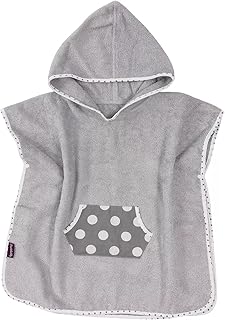 PuckDaddy Bade-Poncho Smilla – 57x84 cm, Baby-Poncho mit Kapuze mit Punkte Muster in Grau, flauschiger Kapuzenbademantel aus 100% Baumwolle & Frottee nach OEKO-TEX geprüft, Badehandtuch bis 5 Jahre