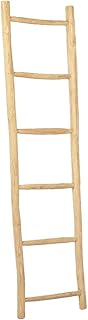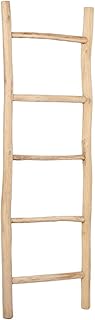 LEBENSwohnART Teak Deko-Leiter KEPALA H180cm Natural Handtuchhalter Kleiderständer Holzleiter