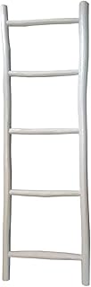 LEBENSwohnART Teak Deko-Leiter KEPALA H150cm White-Wash Handtuchhalter Kleiderständer Leiter