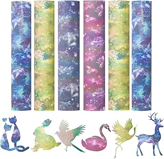 Souarts Plotterfolie Textil 6PCS Set, Sternenhimmel Muster Vinylfolie Transferfolie zum Aufbügeln, Galaxie Sternennebel Wärmeübertragungsfolie Plotter für DIY T-Shirt Textil Handwerk Leder