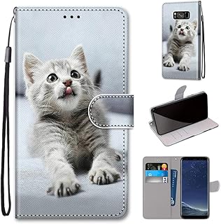 Miagon Flip PU Leder Schutzhülle für Samsung Galaxy S8,Bunt Muster Hülle Brieftasche Case Cover Ständer mit Kartenfächer Trageschlaufe,Grau Katze