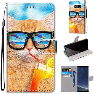 Miagon Flip PU Leder Schutzhülle für Samsung Galaxy S8,Bunt Muster Hülle Brieftasche Case Cover Ständer mit Kartenfächer Trageschlaufe,Limonade Katze