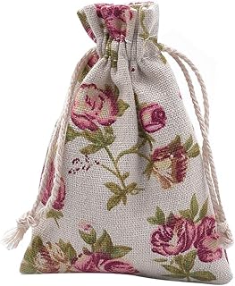 nbeads Stofftaschen, 50 Stück 10 × 14cm Stoff Kleine Kordel Schmuckbeutel mit Gedruckter Rose Für Reisewerkzeuge, Ohrstöpsel, Süßigkeiten Lagerung
