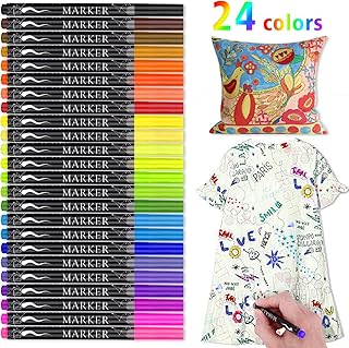Textilstifte, RATEL 24 Farben Wasserfeste Textilmarker Keine Blutung Stoffmalstifte Permanent Marker, Ideal zum Dekorieren von T-Shirts, Lätzchen, Textilien, Schuhen, Handtaschen