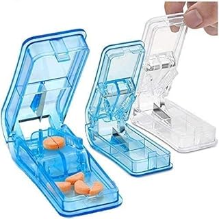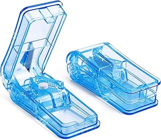 Uooker Pillenschneider Tablettenteiler Multi-Pillen-Splitter-Cutter mit Edelstahl-Schneidklinge und Klingenschutzvorrichtung kann Mehrere Runde Oder Längliche Pillen Gleichzeitig Schneiden (Blau)