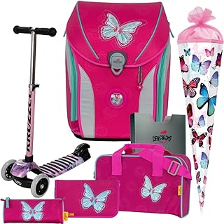 Mariposa - Schmetterling - Butterfly - DerDieDas ErgoFlex MAX Schulranzen-Set 7tlg. mit SCHULTÜTE - BALANCE-SCOOTER mit Leucht-Rädern GRATIS DAZU