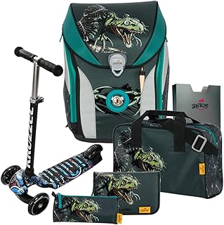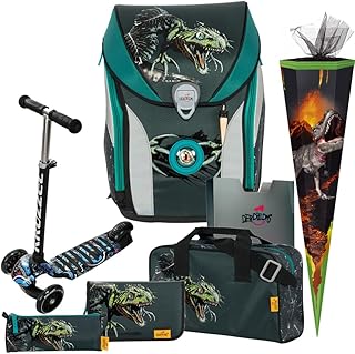 Dino Attack - T-Rex - DerDieDas ErgoFlex MAX Schulranzen-Set 7tlg. mit SCHULTÜTE - BALANCE-SCOOTER mit Leucht-Rädern GRATIS DAZU