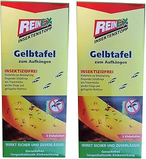Reinex Gelbtafeln Premium Fliegenfallen, Gelbsticker, Insektenfalle, Gelbstecker; gegen Trauermücken, Fliegende Schädlinge, Thripse, geflügelte Blattläuse, Minierfliegen und weiße Fliegen - 10 Stück